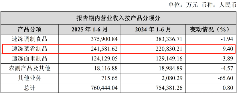 值得注意的是,预制菜成为安井食品2025年上半年同比增速最快的板块。报告期内,预制菜的营业收入达24.16亿元,同比2024年上半年增加9.40%,营收超过速冻食品,在五大品类中成为同比增速最快的品类。